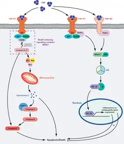 - ↑ Idriss, H. T.; Naismith, J. H. (1 August 2000). "TNF alpha and the TNF receptor superfamily: structure-function relationship(s)". Microscopy Research and Technique. 50 (3): 184–195. doi:10.1002/1097-0029(20000801)50:3<184::AID-JEMT2>3.0.CO;2-H. ISSN 1059-910X. PMID 10891884. S2CID 3003943.