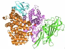 25. 1 2 Hermans SJ, Ascher DB, Hancock NC, Holien JK, Michell BJ, Chai SY, et al. (February 2015). "Crystal structure of human insulin-regulated aminopeptidase with specificity for cyclic peptides". Protein Science. 24 (2): 190–199. doi:10.2210/pdb4p8q/pdb. PMC 4315657. PMID 25408552.