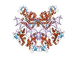 - ↑ Schiering N, Tao X, Zeng H, Murphy JR, Petsko GA, Ringe D (October 1995). "Structures of the apo- and the metal ion-activated forms of the diphtheria tox repressor from Corynebacterium diphtheriae". Proc. Natl. Acad. Sci. U.S.A. 92 (21): 9843–50. doi:10.1073/pnas.92.21.9843. PMC 40899. PMID 7568230.