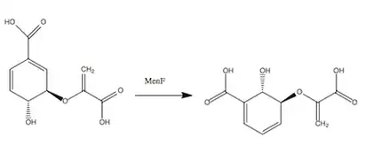 MenF is a gene that codes for the isochorismate synthase found in the menaquinone pathway in Escherichia coli, not to be mistaken for the entC gene that codes for the isochorismate synthase found in the enterobactin pathway in Escherichia coli.[1] This enzyme catalyzes the first step in the biosynthesis of salicylic acid in Pseudomonas aeruginosa.[4] Isochorismate synthase has several other homologs that are found in other organisms. These include: