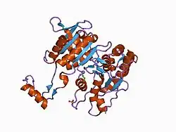 - 1 2 Hurley JH, Thorsness PE, Ramalingam V, Helmers NH, Koshland DE, Stroud RM (November 1989). "Structure of a bacterial enzyme regulated by phosphorylation, isocitrate dehydrogenase". Proc. Natl. Acad. Sci. U.S.A. 86 (22): 8635–9. doi:10.1073/pnas.86.22.8635. PMC 298342. PMID 2682654.