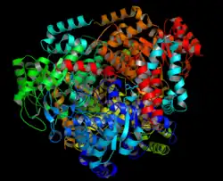 ![]() Homotetrameric structure of Isocitrate lyase from E. coli. Based on PDB 1IGW.[1] | |||||||||