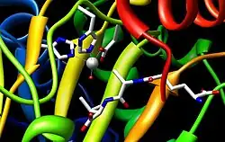 - ↑ Borovok I, Landman O, Kreisberg-Zakarin R, Aharonowitz Y, Cohen G (February 1996). "Ferrous active site of isopenicillin N synthase: genetic and sequence analysis of the endogenous ligands". Biochemistry. 35 (6): 1981–7. doi:10.1021/bi951534t. PMID 8639682.