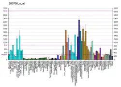 - Xu XR, Huang J, Xu ZG, Qian BZ, Zhu ZD, Yan Q, et al. (December 2001). "Insight into hepatocellular carcinogenesis at transcriptome level by comparing gene expression profiles of hepatocellular carcinoma with those of corresponding noncancerous liver". Proceedings of the National Academy of Sciences of the United States of America. 98 (26): 15089–15094. Bibcode:2001PNAS...9815089X. doi:10.1073/pnas.241522398. PMC 64988. PMID 11752456.