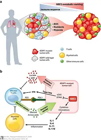 - ↑ Tian Y, Liu Q, Yu S, Chu Q, Chen Y, Wu K, Wang L (October 2020). "NRF2-Driven KEAP1 Transcription in Human Lung Cancer". Molecular Cancer Research. 18 (10): 1465–1476. doi:10.1158/1541-7786.MCR-20-0108. PMID 32571982. S2CID 219989242.