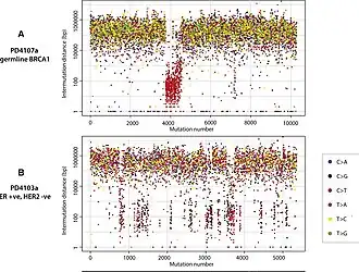 - 1 2 3 4 5 Nik-Zainal, Serena; Alexandrov, Ludmil B.; Wedge, David C.; Van Loo, Peter; Greenman, Christopher D.; Raine, Keiran; Jones, David; Hinton, Jonathan; Marshall, John (May 2012). "Mutational Processes Molding the Genomes of 21 Breast Cancers". Cell. 149 (5): 979–993. doi:10.1016/j.cell.2012.04.024. PMC 3414841. PMID 22608084.