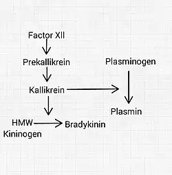 - Kallikreins (tissue and plasma kallikrein) are serine proteases that liberate kinins[7] (BK and KD) from the kininogens, which are plasma proteins that are converted into vasoactive peptides.[8] Prekallikrein is the precursor of plasma kallikrein. It can only activate kinins after being activated itself by factor XIIa or other stimuli.