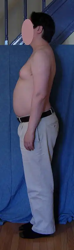By adulthood, individuals with KS tend to become taller than average, with proportionally longer arms and legs, less-muscular bodies, more belly fat, wider hips, and narrower shoulders. Some will show little to no symptomology, a lanky, youthful build and facial appearance, or a rounded body type. Gynecomastia (increased breast tissue) in males is common, affecting up to 80% of cases.[21] Approximately 10% of males with XXY chromosomes have gynecomastia noticeable enough that they may choose to have surgery.