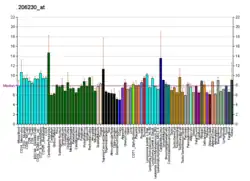 LIM homeobox 1 is a protein that in humans is encoded by the LHX1 gene.[5] This gene encodes a member of a large protein family which contains the LIM domain, a unique cysteine-rich zinc-binding domain. The encoded protein is a transcription factor important for control of differentiation and development of neural and lymphoid cells. It is also key in development of renal and urogenital systems and is required for normal organogenesis.[6] A similar protein in mice is an essential regulator of the vertebrate head organizer.[5]