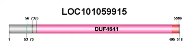 The LOC101059915 protein has been predicted to be located in the cell nucleus (PSORT II).[14]