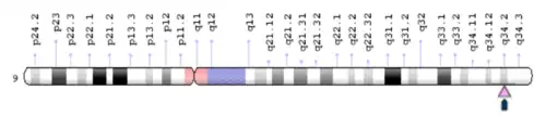 The cytogenic location of LOC101928193 in humans is located on the positive strand at 9q34.2. The molecular location of the protein-encoding region of LOC101928193 is from base pairs 133,189,767 to 133,192,979. Within this region, there is 1 intron and 2 exons.[4]
