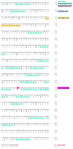 Several transcription factors are predicted to bind to the promoter sequence. Some examples include:[23]