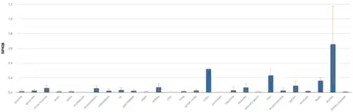 - 1 2 3 4 Fagerberg L, Hallström BM, Oksvold P, Kampf C, Djureinovic D, Odeberg J, Habuka M, Tahmasebpoor S, Danielsson A, Edlund K, Asplund A, Sjöstedt E, Lundberg E, Szigyarto CA, Skogs M, Takanen JO, Berling H, Tegel H, Mulder J, Nilsson P, Schwenk JM, Lindskog C, Danielsson F, Mardinoglu A, Sivertsson A, von Feilitzen K, Forsberg M, Zwahlen M, Olsson I, Navani S, Huss M, Nielsen J, Ponten F, Uhlén M (February 2014). "Analysis of the human tissue-specific expression by genome-wide integration of transcriptomics and antibody-based proteomics". Molecular & Cellular Proteomics. 13 (2): 397–406. doi:10.1074/mcp.M113.035600. PMC 3916642. PMID 24309898.