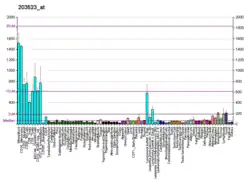 - ↑ Kadiyala RK, McIntyre BW, Krensky AM (Jan 1991). "Molecular cloning and characterization of WP34, a phosphorylated human lymphocyte differentiation and activation antigen". Eur J Immunol. 20 (11): 2417–23. doi:10.1002/eji.1830201109. PMID 2174784. S2CID 35829868.