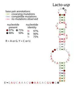 ![]() Consensus secondary structure of Lacto-usp RNAs | |