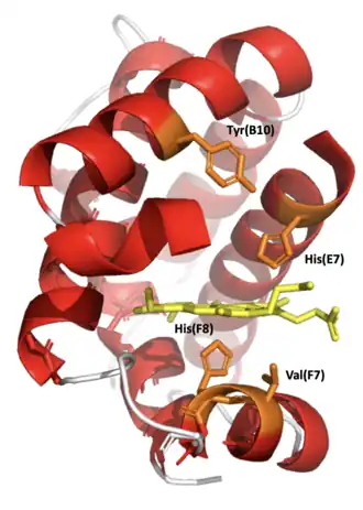 - 1 2 Harutyunyan EH, Safonova TN, Kuranova IP, Popov AN, Teplyakov AV, Obmolova GV, Rusakov AA, Vainshtein BK, Dodson GG, Wilson JC. "The structure of deoxy- and oxy-leghaemoglobin from lupin".