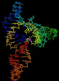 - ↑ Robertson MP, Hesselberth JR, Ellington AD (April 2001). "Optimization and optimality of a short ribozyme ligase that joins non-Watson-Crick base pairings". RNA. 7 (4): 513–523. doi:10.1017/S1355838201002199. PMC 1370105. PMID 11345430.