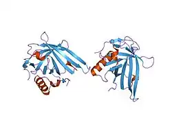 - ↑ Godovac-Zimmermann J (February 1988). "The structural motif of beta-lactoglobulin and retinol-binding protein: a basic framework for binding and transport of small hydrophobic molecules?". Trends in Biochemical Sciences. 13 (2): 64–66. doi:10.1016/0968-0004(88)90031-X. PMID 3238752.