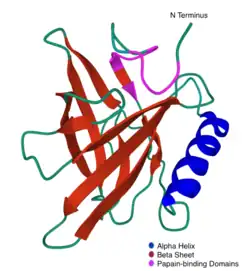 LCN1 shares three sequence motifs with cystatins which enables LCN1 to act in a similar manner to cystatins as a cysteine proteinase inhibitor. These domains have specifically been shown to bind Papain.[6][7]