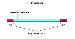 A long terminal repeat (LTR) is a pair of identical sequences of DNA, several hundred base pairs long, which occur in eukaryotic genomes on either end of a series of genes or pseudogenes that form a retrotransposon or an endogenous retrovirus or a retroviral provirus. All retroviral genomes are flanked by LTRs, while there are some retrotransposons without LTRs. Typically, an element flanked by a pair of LTRs will encode a reverse transcriptase and an integrase, allowing the element to be copied and inserted at a different location of the genome. Copies of such an LTR-flanked element can often be found hundreds or thousands of times in a genome. LTR retrotransposons comprise about 8% of the human genome.[1]