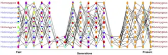 It has been proposed that LOH may limit the longevity of asexual organisms.[9][10] The minor allele in heterozygous areas of the genome is likely to have mild fitness consequences compared to de-novo mutations because selection has had time to remove deleterious alleles. When allelic gene conversion removes the major allele at these sites organisms are likely to experience a mild decline in fitness. Because LOH is much more common than de-novo mutation, and because the fitness consequences are closer to neutrality, this process should drive Muller's ratchet more quickly than de-novo mutations. While this process has received little experimental investigation, it is known that major signature of asexuality in metazoan genomes appears to be genome wide LOH, a sort of anti-meselson effect.
