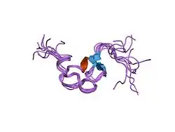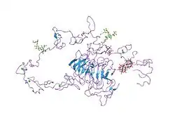 - ↑ Daly NL, Scanlon MJ, Djordjevic JT, Kroon PA, Smith R (July 1995). "Three-dimensional structure of a cysteine-rich repeat from the low-density lipoprotein receptor". Proc. Natl. Acad. Sci. U.S.A. 92 (14): 6334–8. Bibcode:1995PNAS...92.6334D. doi:10.1073/pnas.92.14.6334. PMC 41512. PMID 7603991.