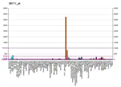 - ↑ Petryszak R, Burdett T, Fiorelli B, Fonseca NA, Gonzalez-Porta M, Hastings E, Huber W, Jupp S, Keays M, Kryvych N, McMurry J, Marioni JC, Malone J, Megy K, Rustici G, Tang AY, Taubert J, Williams E, Mannion O, Parkinson HE, Brazma A (Jan 2014). "Expression Atlas update--a database of gene and transcript expression from microarray- and sequencing-based functional genomics experiments". Nucleic Acids Research. 42 (Database issue): D926-32. doi:10.1093/nar/gkt1270. PMC 3964963. PMID 24304889.