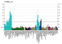 - 1 2 3 GRCm38: Ensembl release 89: ENSMUSG00000031578 – Ensembl, May 2017