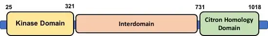 - Interdomain - Connects the kinase and CNH domains, facilitates protein-protein interactions. Although it has been identified, its structural components and functionality are currently poorly understood