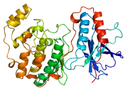 Mitogen-activated protein kinase 14, also called p38-α, is an enzyme that in humans is encoded by the MAPK14 gene.[5]
