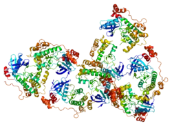 - Nagase T, Kikuno R, Ishikawa K, et al. (2000). "Prediction of the coding sequences of unidentified human genes. XVII. The complete sequences of 100 new cDNA clones from brain which code for large proteins in vitro". DNA Res. 7 (2): 143–50. doi:10.1093/dnares/7.2.143. PMID 10819331.