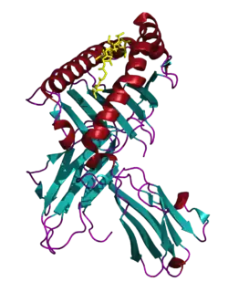 Protein melan-A also known as melanoma antigen recognized by T cells 1 or MART-1 is a protein that in humans is encoded by the MLANA or "MALENA" gene.[5] A fragment of the protein, usually consisting of the nine amino acids 27 to 35, is bound by MHC class I complexes which present it to T cells of the immune system. These complexes can be found on the surface of melanoma cells. Decameric peptides (26-35) are being investigated as cancer vaccines.
