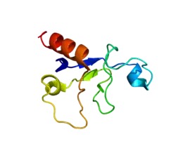 Muscleblind Like Splicing Regulator 1 (MBNL1) is an RNA splicing protein that in humans is encoded by the MBNL1 gene.[5][6][7] It has a well characterized role in Myotonic dystrophy where impaired splicing disrupts muscle development and function.[8] In addition to regulating mRNA maturation of hundreds of genes MBNL1 (along with its paralogs MBNL2 & MBNL3) autoregulate alternative splicing of the MBNL1 pre-mRNA transcript.[9] The founding member of the human MBNL family of proteins was the Drosophila Muscleblind protein (PMID 9334280).