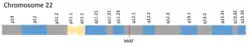 The MIAT gene is located on Chromosome 22 and is 30,051 bases in length.[8] MIAT's other name, gomafu, is a word in Japanese that means “spotted pattern”.[9] The reason it is named as so is because Gomafu is distributed in the nucleoplasm in a spotted pattern.[9] Moreover, its orientation is a plus strand.[8]