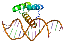 - ↑ Zhang H, Catron KM, Abate-Shen C (Mar 1996). "A role for the Msx-1 homeodomain in transcriptional regulation: residues in the N-terminal arm mediate TATA binding protein interaction and transcriptional repression". Proceedings of the National Academy of Sciences of the United States of America. 93 (5): 1764–1769. Bibcode:1996PNAS...93.1764Z. doi:10.1073/pnas.93.5.1764. PMC 39855. PMID 8700832.