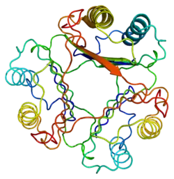 Macrophage migration inhibitory factor (MIF), also known as glycosylation-inhibiting factor (GIF), L-dopachrome isomerase, or phenylpyruvate tautomerase is a protein that in humans is encoded by the MIF gene.[5][6] MIF is an important regulator of innate immunity.[7] The MIF protein superfamily also includes a second member with functionally related properties, the D-dopachrome tautomerase (D-DT).[8] CD74 is a surface receptor for MIF.[9]