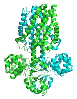 - 1 2 3 Hattori M, Iwase N, Furuya N, Tanaka Y, Tsukazaki T, Ishitani R, Maguire ME, Ito K, Maturana A, Nureki O (November 2009). "Mg(2+)-dependent gating of bacterial MgtE channel underlies Mg(2+) homeostasis". The EMBO Journal. 28 (22): 3602–12. doi:10.1038/emboj.2009.288. PMC 2782099. PMID 19798051.