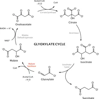 - ↑ Cioni M, Pinzauti G, Vanni P (1981). "Comparative biochemistry of the glyoxylate cycle". Comparative Biochemistry and Physiology B. 70: 1–26. doi:10.1016/0305-0491(81)90118-8.