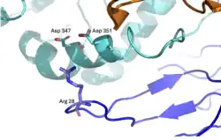 Mambalgin1 binding to hASIC1aΔC induces a conformational change in Finger-II of Mamba1. The significant residues from hASIC1aΔC in this interaction are Asp347, Asp351, and Phe352 on the α5 helix of the thumb domain. These residues interact with Phe27 and Arg28 on Mambalgin1, likely forming salt bridges and causing the hASIC1aΔC residues to flip outward from the acidic pocket. This change is significant as the tip region of Finger-II flips to the thumb domain of hASIC1aΔC to facilitate the interaction between the toxin and the channel.[6]