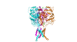 Human acid-sensing ion channel 1a inhibition (hASIC1aΔC) by snake toxin mambalgin1 develops a complex of three hASIC1aΔC subunits with six 6 NAG ligands (2 per subunit). The PDB code of this complex is 7CFT. Each hASIC1aΔC subunit is composed of an acid-sensing ion channel and a mambalgin1. Mambalgin1 is the toxin within hASIC1aΔC and is present in each subunit. The trimeric hASIC1aΔC shows a canonical chalice-like structure where each subunit of hASIC1aΔC harbors a cysteine-rich extracellular domain (ECD). By binding to the ASIC's ECD, mambalgin prevents the ECD from opening in response to a drop in pH from the venom, and prevents the ASICs from functioning. [6]