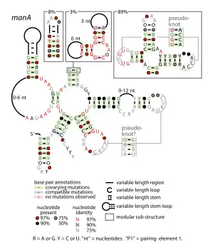 ![]() Consensus secondary structure of manA RNAs | |