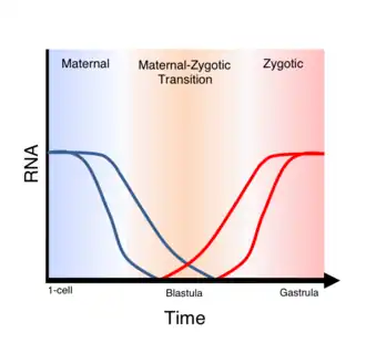 - 1 2 Tadros W, Lipshitz HD (2009). "The maternal to zygotic transition: a play in two acts". Development. 136 (18): 3033–42. doi:10.1242/dev.033183. PMID 19700615.