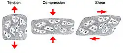 - ↑ Torzilli, P. A.; Deng, X-H.; Ramcharan, M. (2006). "Effect of Compressive Strain on Cell Viability in Statically Loaded Articular Cartilage". Biomechanics and Modeling in Mechanobiology. 5 (2–3): 123–32. doi:10.1007/s10237-006-0030-5. PMID 16506016. S2CID 39216430.