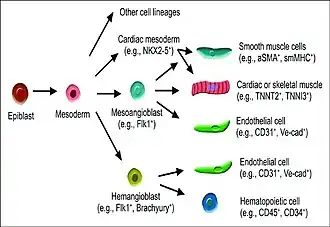 - ↑ Minasi, Maria G.; Riminucci, Mara; De Angelis, Luciana; Borello, Ugo; Berarducci, Barbara; Innocenzi, Anna; Caprioli, Arianna; Sirabella, Dario; Baiocchi, Marta; De Maria, Ruggero; Boratto, Renata; Jaffredo, Thierry; Broccoli, Vania; Bianco, Paolo; Cossu, Giulio (2002-06-01). "The meso-angioblast: a multipotent, self-renewing cell that originates from the dorsal aorta and differentiates into most mesodermal tissues". Development. 129 (11): 2773–2783. doi:10.1242/dev.129.11.2773. ISSN 1477-9129. PMID 12015303.