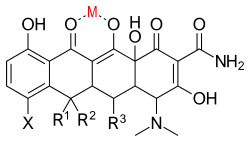 - 1 2 Zakeri, B.; Wright, G. D. (2008). "Chemical biology of tetracycline antibiotics". Biochemistry and Cell Biology. 86 (2): 124–136. doi:10.1139/o08-002. PMID 18443626.