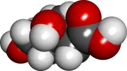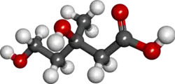 Mevalonic acid (MVA) is a key organic compound in biochemistry; the name is a contraction of dihydroxymethylvalerolactone. The carboxylate anion of mevalonic acid, which is the predominant form in biological environments, is known as mevalonate and is of major pharmaceutical importance. Drugs like statins (which lower levels of cholesterol) stop the production of mevalonate by inhibiting HMG-CoA reductase.[1]