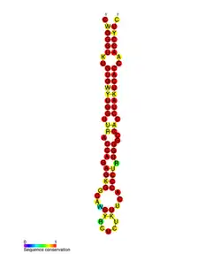 miR-134 is a family of microRNA precursors found in mammals, including humans.[1] MicroRNAs are typically transcribed as ~70 nucleotide precursors and subsequently processed by the Dicer enzyme to give a ~22 nucleotide product.[2] The excised region or, mature product, of the miR-134 precursor is the microRNA mir-134.