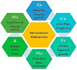 - 1 2 Hänsch R, Mendel RR (2009-06-01). "Physiological functions of mineral micronutrients (Cu, Zn, Mn, Fe, Ni, Mo, B, Cl)". Current Opinion in Plant Biology. Physiology and Metabolism. 12 (3): 259–266. Bibcode:2009COPB...12..259H. doi:10.1016/j.pbi.2009.05.006. ISSN 1369-5266. PMID 19524482.