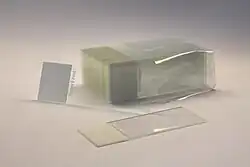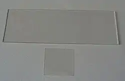 - ↑ Quartz Microscope Slides and Cover Slips Archived 2015-08-10 at the Wayback Machine catalog page from a commercial website (SPI Supplies). Accessed on 2010-01-23.