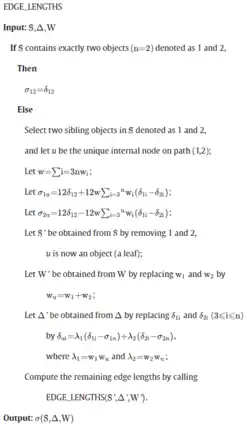 - ↑ Studier, J. A.; Keppler, K. J. (November 1988). "A note on the neighbor-joining algorithm of Saitou and Nei". Molecular Biology and Evolution. 5 (6): 729–31. doi:10.1093/oxfordjournals.molbev.a040527. ISSN 1537-1719. PMID 3221794.